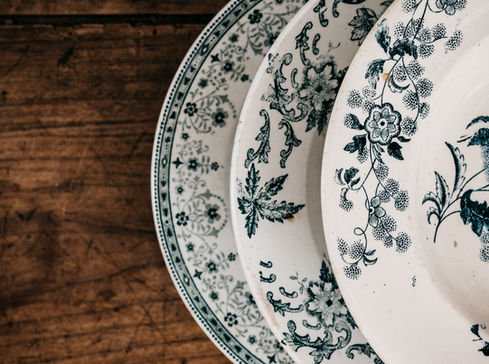 Assiettes dépareillées, pour une table unique.